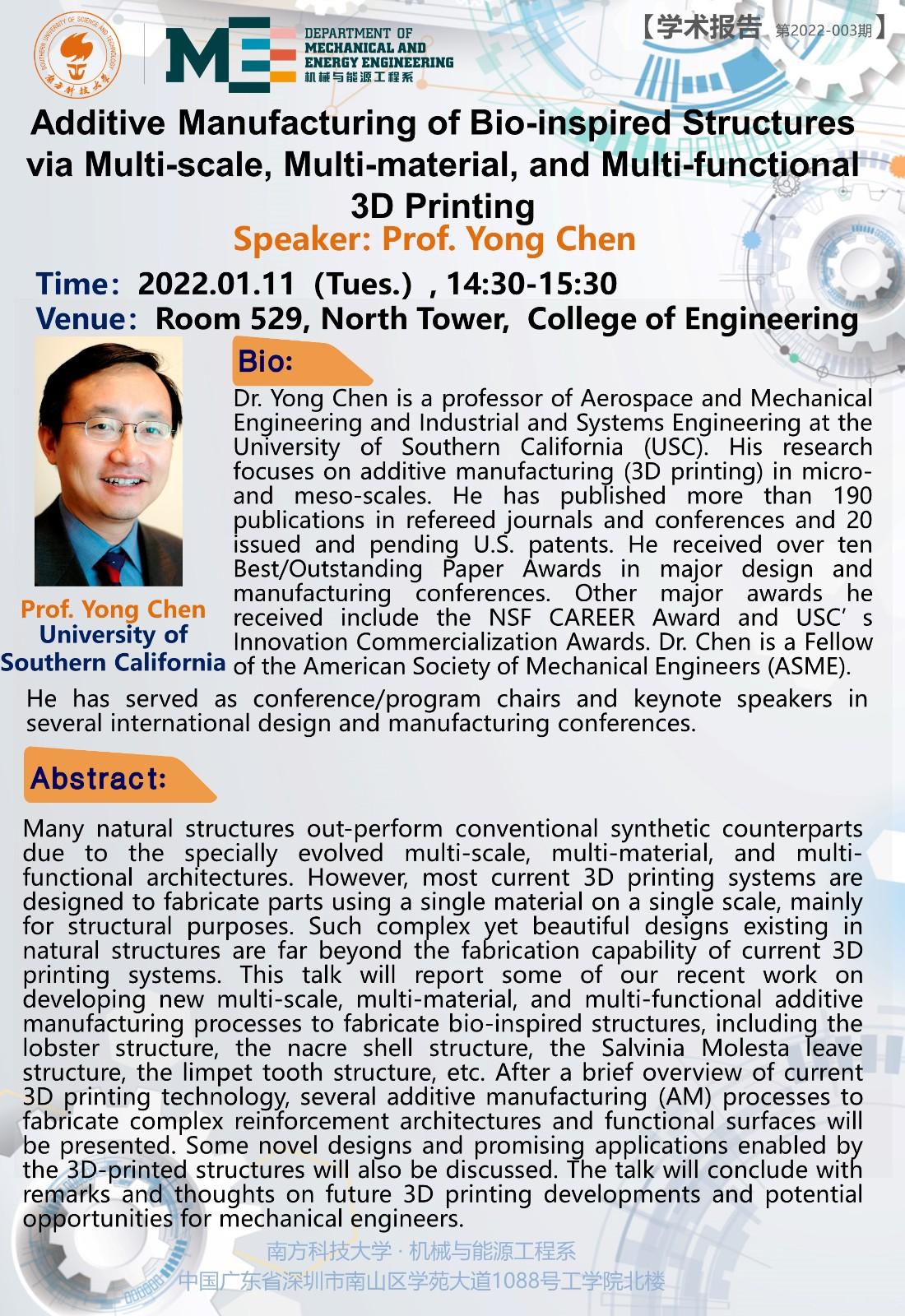 Additive Manufacturing of Bio-inspired Structures via Multi-scale, Multi-material, and Multi-functional 3D Printing