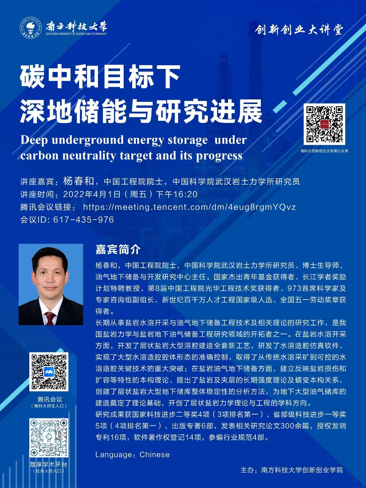 Deep underground energy storage under carbon neutrality target and its progress