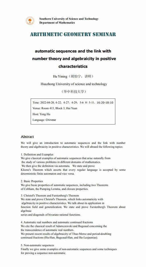 Lecture Room 415, Block 3, Hui Yuan