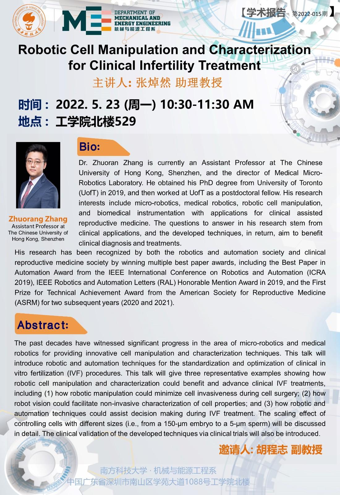 Robotic Cell Manipulation and Characterization for Clinical Infertility Treatment