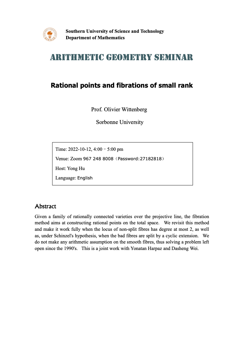 Zoom ID: 967 248 8008, Passcode: 27182818