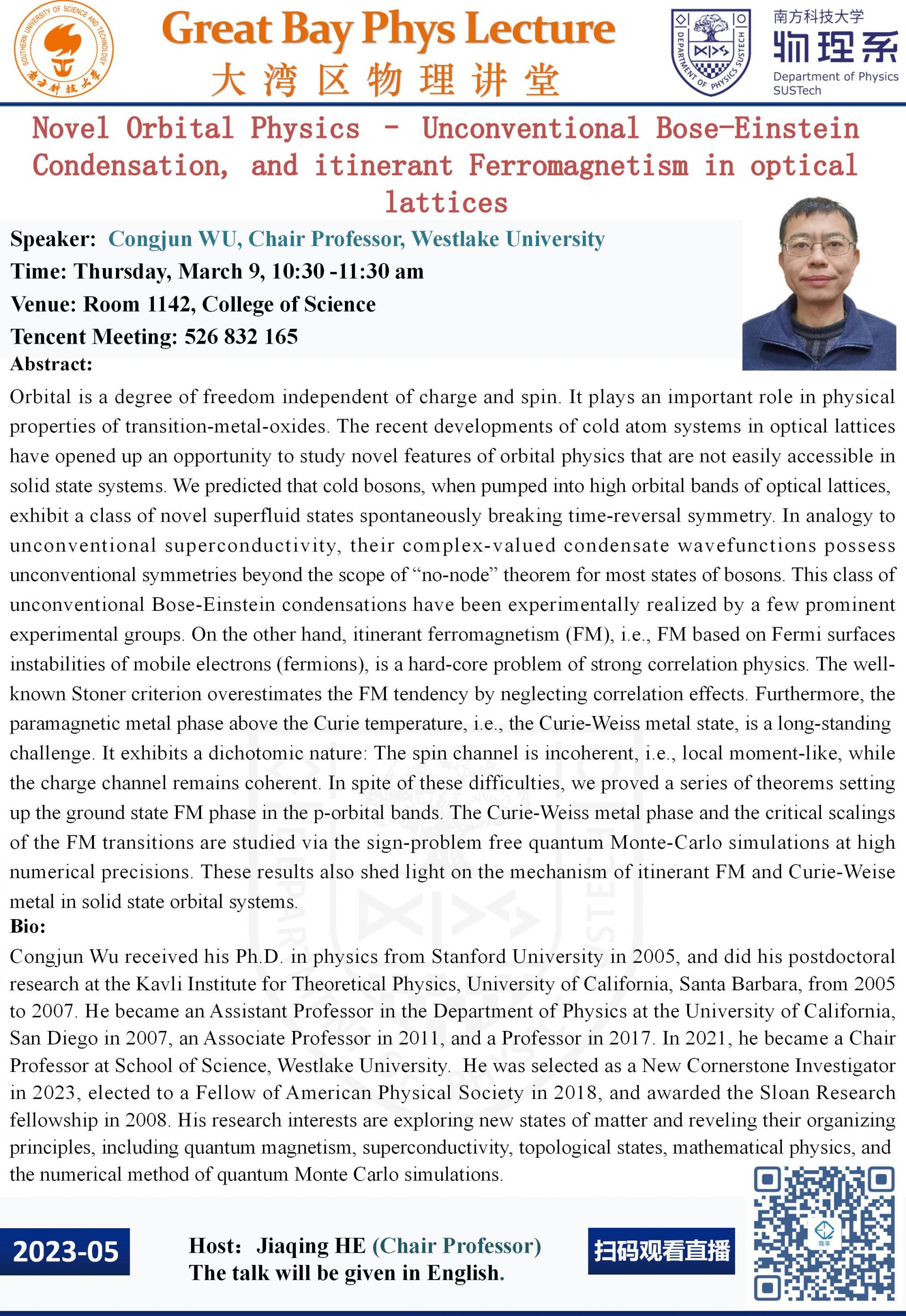 - WHERE: Room 1142, College of Science,Tencent Meeting ID: 526 832 165