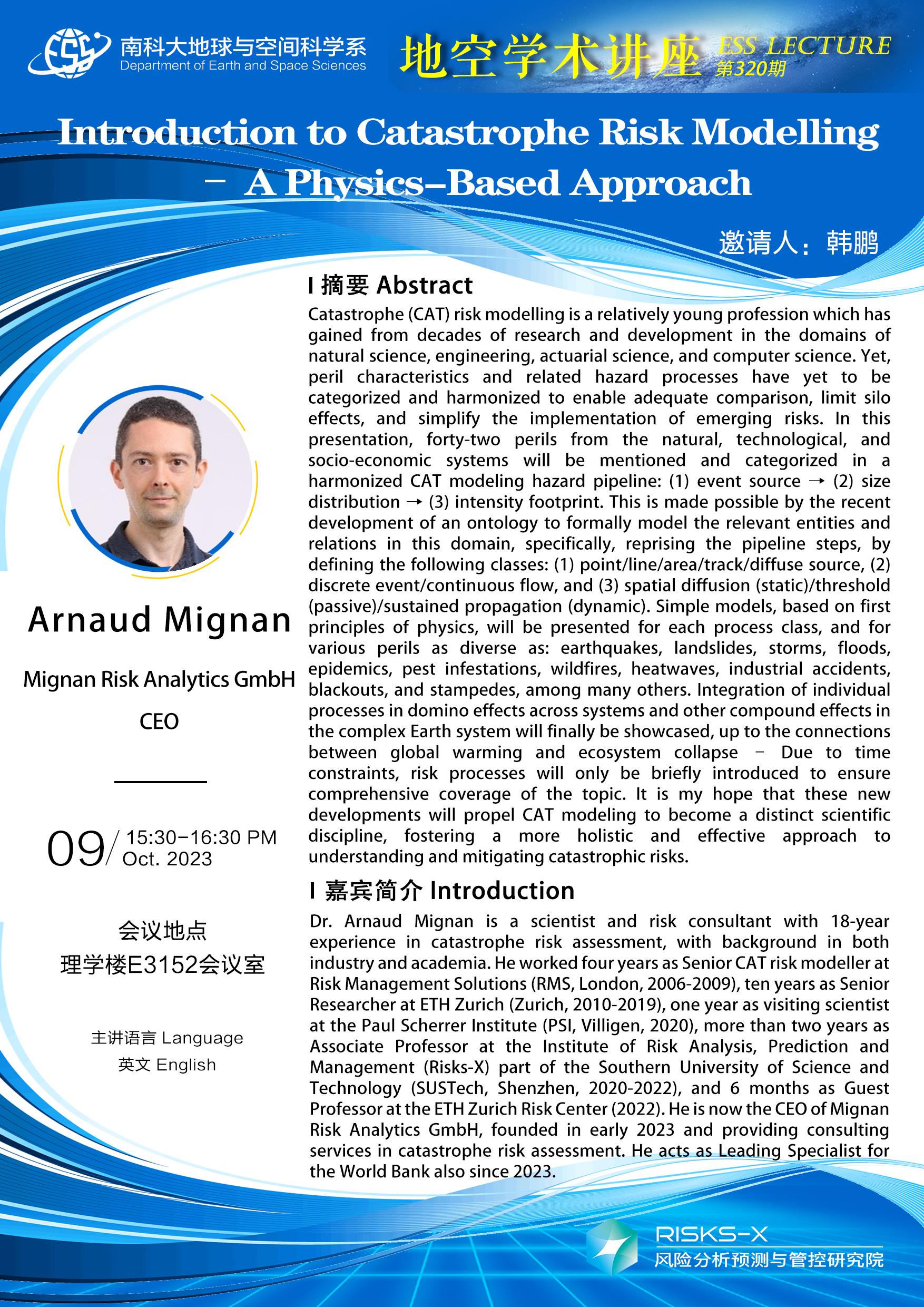 Dr. Arnaud Mignan, CEO, Mignan Risk Analytics GmbH